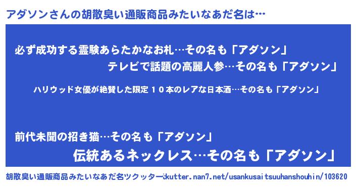 | 意味不明あだ名 | 『住所不定無職アダソン(39歳)』 |