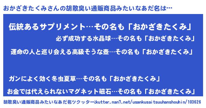 | 欧米人風あだ名 | 『おかざきたくみクリステル』 |