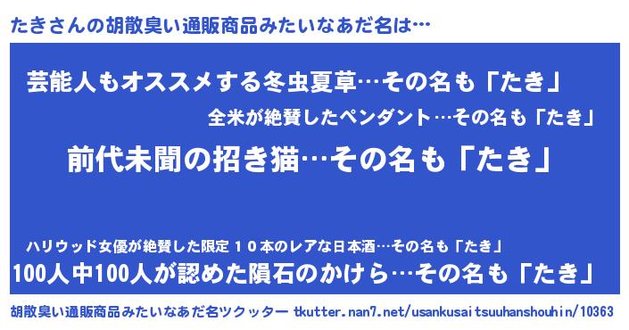 | 意味不明あだ名 | 『永久保存たき』『自称たき』 |
