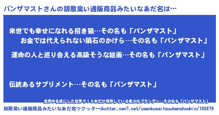 | 女子向けラノベタイトル風あだ名 | 『パンザマストの玉の輿計画!』 |