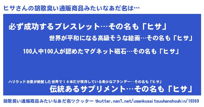 | 男性向けラノベタイトル風あだ名 | 『はたらくヒサさま!』『ヒサの憂鬱』 |