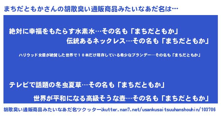 | 意味不明あだ名 | 『住所不定無職まちだともか(91歳)』 |