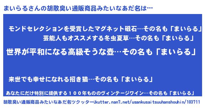 | 意味不明あだ名 | 『まいらるフォーエバー』『自称まいらる』 |