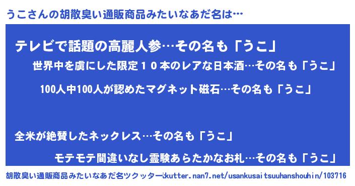 | ヒーロー風カッコイイあだ名 | 『正義の使者うこ』『最強戦士ウコ』 |