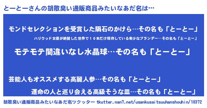 | ヒーロー風カッコイイあだ名 | 『スーパートートー』『仮面トーダー』 |