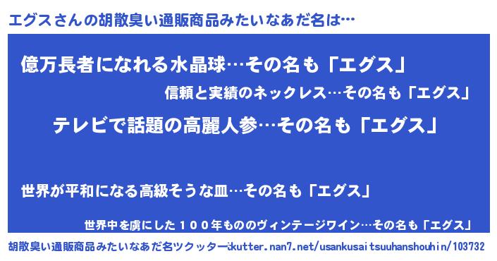 | 意味不明あだ名 | 『自称エグス』『つくし科エグス属』 |