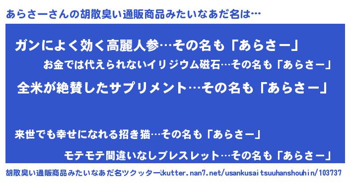 | 女子向けラノベタイトル風あだ名 | 『あらさー様がみてる』『あらさー恋絵巻』 |