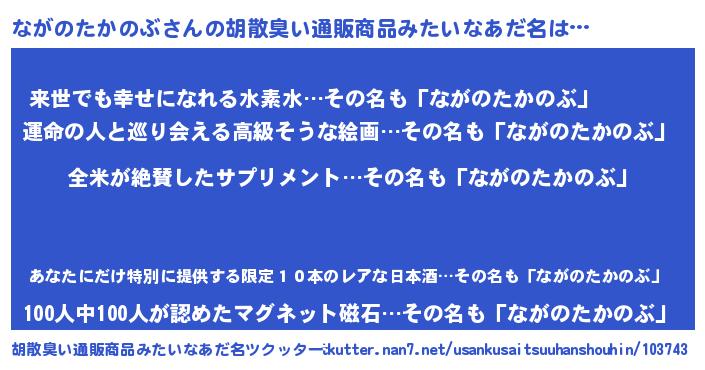 | 意味不明あだ名 | 『とにかく怪しいながのたかのぶ』 |