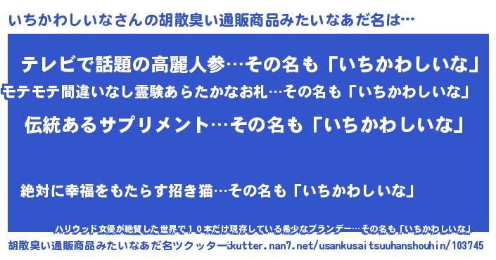 | 意味不明あだ名 | 『とにかく怪しいいちかわしいな』 |