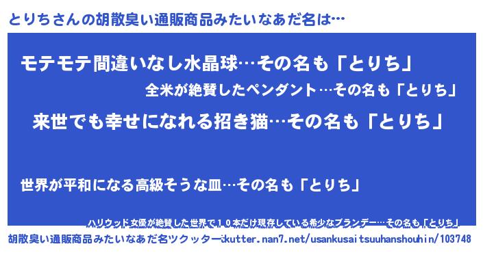 | 意味不明あだ名 | 『永久保存とりち』『ペロリンとりち』 |