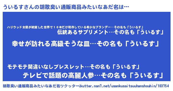 | 意味不明あだ名 | 『ういるすフォーエバー』『自称ういるす』 |