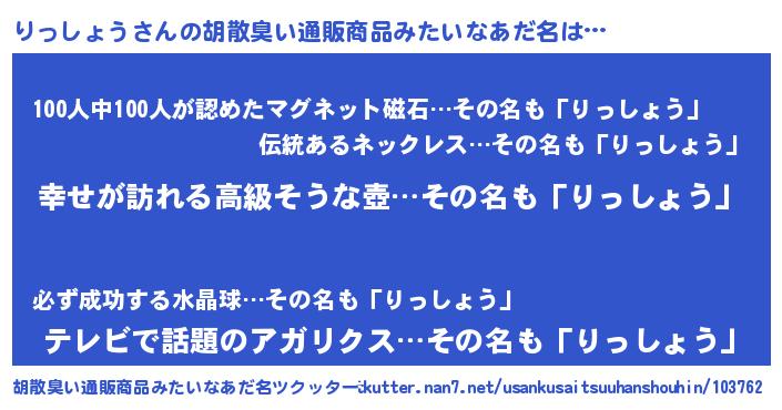 | 男性向けラノベタイトル風あだ名 | 『リッショウスレイヤー』 |