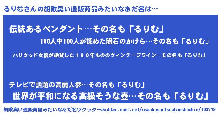 ヘコむあだ名 | 『るりお』『なまこ酢』『るりむ(笑)』 |