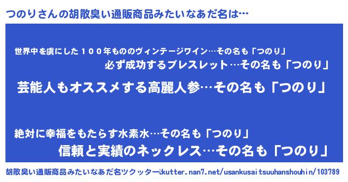 | ヘコむあだ名 | 『つのを』『つのふぇ~』『なまこ酢』 |
