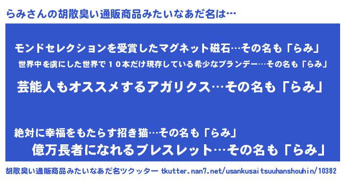 | ヘコむあだ名 | 『らみにゅー』『らみ(笑)』『らみお』 |