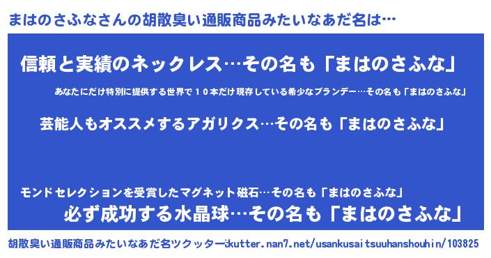 | 意味不明あだ名 | 『自称まはのさふな』 |