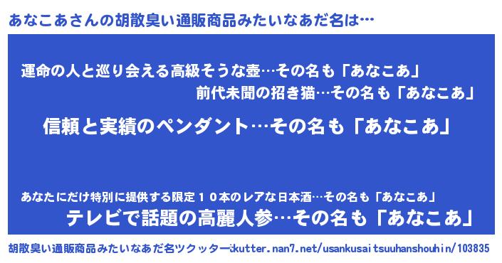 | 男性向けラノベタイトル風あだ名 | 『緋弾のアナコア』 |