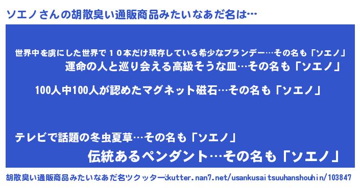 | ピコ太郎風あだ名 | 『ソソ太郎』『ソエ四郎』『ピソ一郎』 |