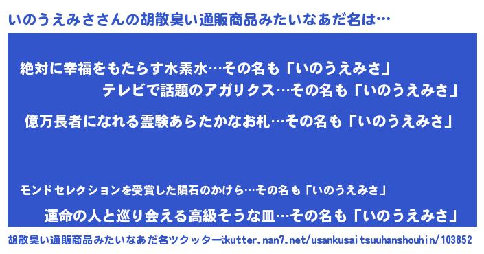 | ヘコむあだ名 | 『いのもー』『いのうえみさ(笑)』 |