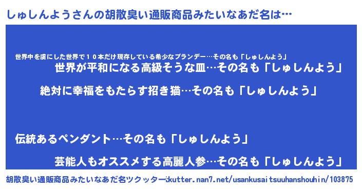 | 意味不明あだ名 | 『永久保存しゅしんよう』 |