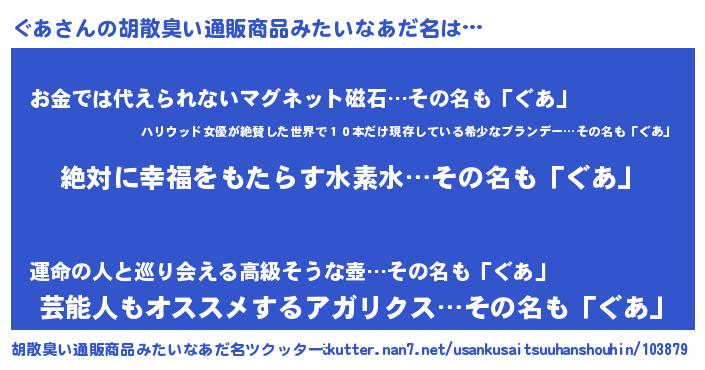 | ヘコむあだ名 | 『ぐあ(震え声)』『豆乳』『ぐあ太郎』 |