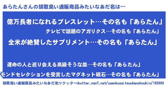 | 意味不明あだ名 | 『とにかく怪しいあらたん』 |