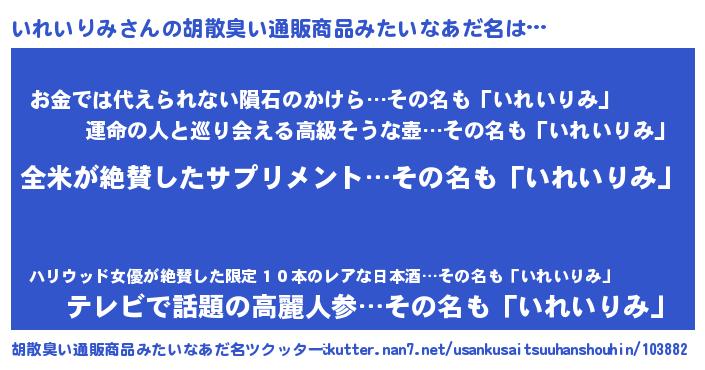 | 男性向けラノベタイトル風あだ名 | 『いれいりみの嫁は女の子じゃないと思った?』 |