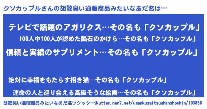 | 意味不明あだ名 | 『とにかく怪しいクソカップル』 |