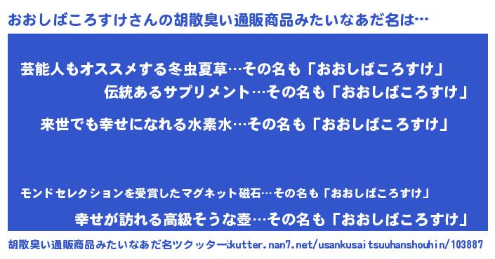 | 意味不明あだ名 | 『永久保存おおしばころすけ』 |
