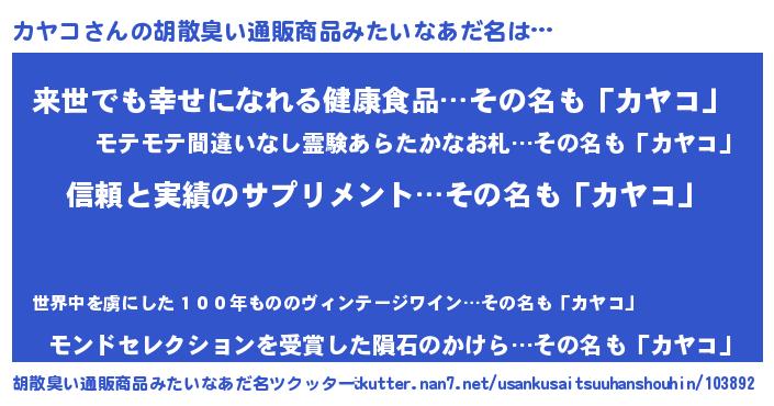 | 意味不明あだ名 | 『とにかく怪しいカヤコ』 |