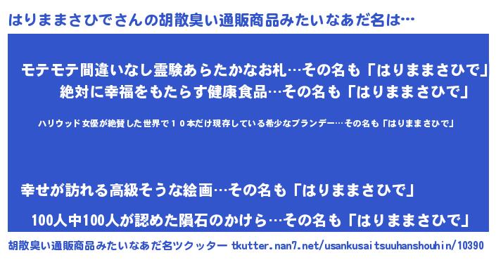| 意味不明あだ名 | 『住所不定無職はりままさひで(85歳)』 |
