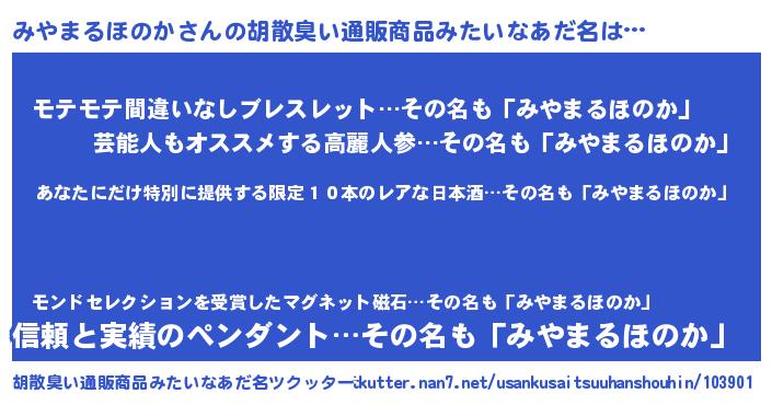 | 恥ずかしいあだ名 | 『プリティーみやまるほのか』『みやちん』 |