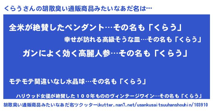 | ピコ太郎風あだ名 | 『クラ次郎』『ピク二郎』『クコ四郎』 |