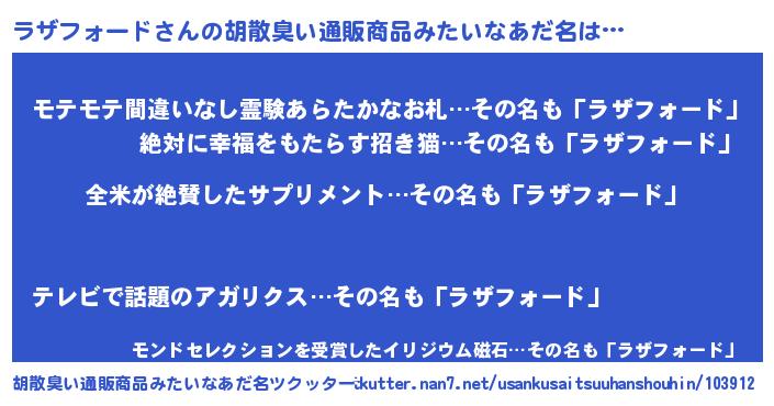 | 意味不明あだ名 | 『とにかく怪しいラザフォード』 |