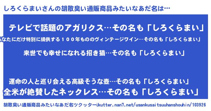 | 意味不明あだ名 | 『永久保存しろくらまい』 |