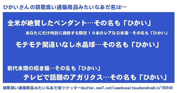 | 意味不明あだ名 | 『ペロリンひかい』『自称ひかい』 |