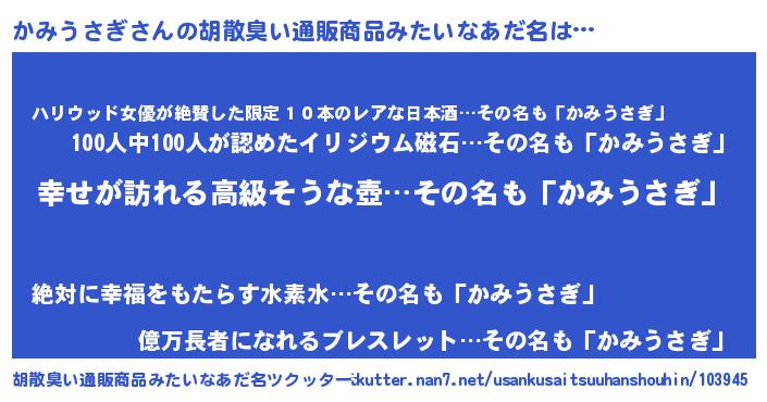 かみうさぎさんの胡散臭い通販商品みたいなあだ名をツクッター!