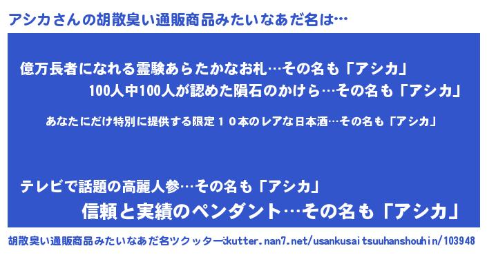 | 意味不明あだ名 | 『住所不定無職アシカ(39歳)』 |
