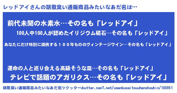 | 意味不明あだ名 | 『住所不定無職レッドアイ(5歳)』 |