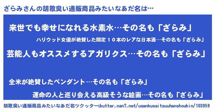 | 意味不明あだ名 | 『自称ざらみ』『永久保存ざらみ』 |