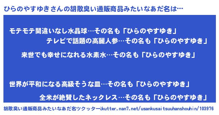 | ヘコむあだ名 | 『ひらのやすゆき(遠い目)』『ひらにゅー』 |