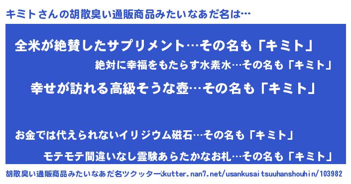 | ヒーロー風カッコイイあだ名 | 『ウルトラキミトマン』『暗黒騎士キミ』 |