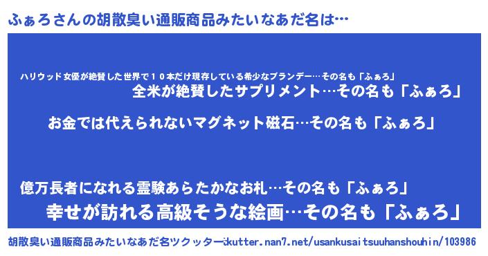 | 女子向けラノベタイトル風あだ名 | 『ふぁろ恋絵巻』『ふぁろ伯爵の花嫁』 |