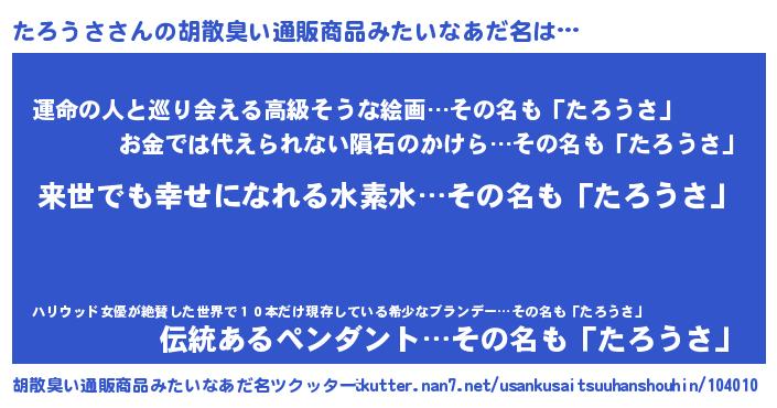 たろうささんの胡散臭い通販商品みたいなあだ名をツクッター!