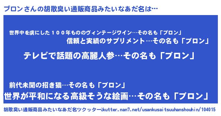 | 意味不明あだ名 | 『自称ブロン』『住所不定無職ブロン(1歳)』 |