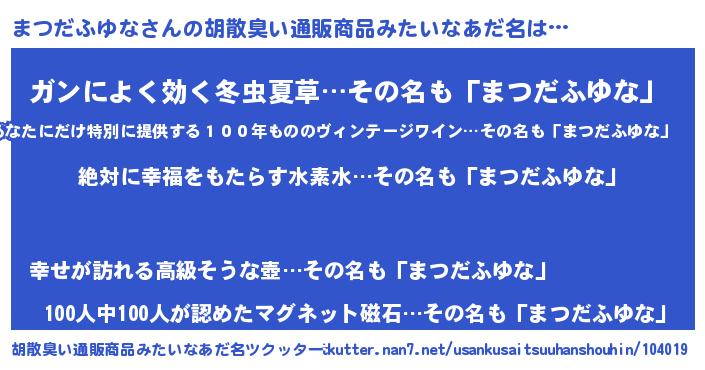 | ヘコむあだ名 | 『まつだふゆな(苦笑)』『牛乳』 |