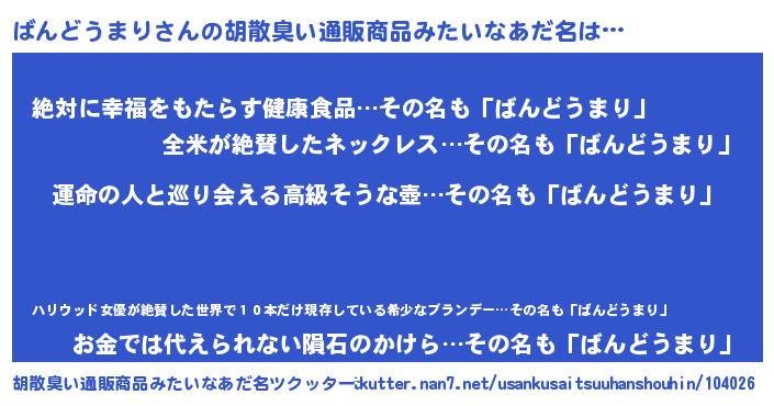 | ヒーロー風カッコイイあだ名 | 『ウルトラばんどうまりマン』 |