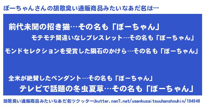ぼーちゃんさんの胡散臭い通販商品みたいなあだ名をツクッター!