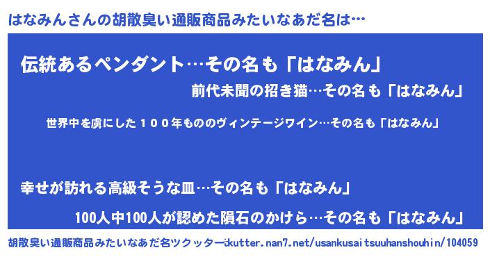 | 欧米人風あだ名 | 『ダレノガレはなみん』 |