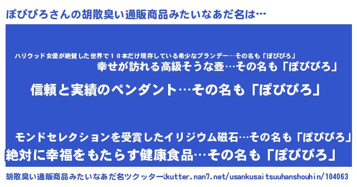 | 意味不明あだ名 | 『とにかく怪しいぽぴぴろ』 |